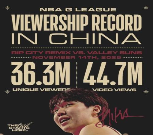据统计,这场发展联盟的比赛合计吸引了3630万名独立观众(指的是去重后的观看人数),比赛视频的总观看次数更是达到4470万。